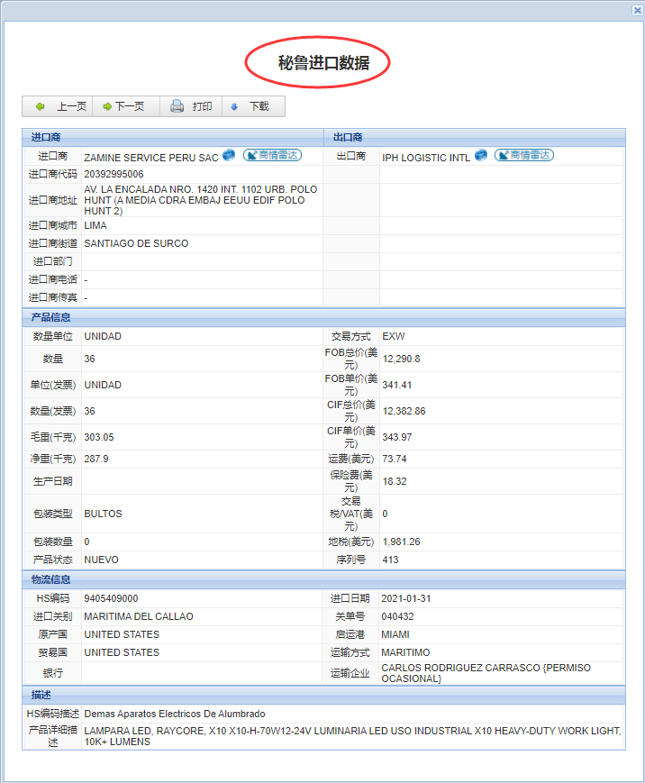 秘鲁海关数据:秘鲁是南美洲西部的一个国家,北邻厄瓜多尔和哥伦比亚,东与巴西和玻利维亚接壤,南接智利,西濒太平洋,为南美洲国家联盟的成员国。秘鲁首都利马,货币新索尔,官方语言西班牙语。秘鲁海关数据为秘鲁海关提单数据,数据为在线版、给予各种有价值的分析报告,每个月更新一次。
