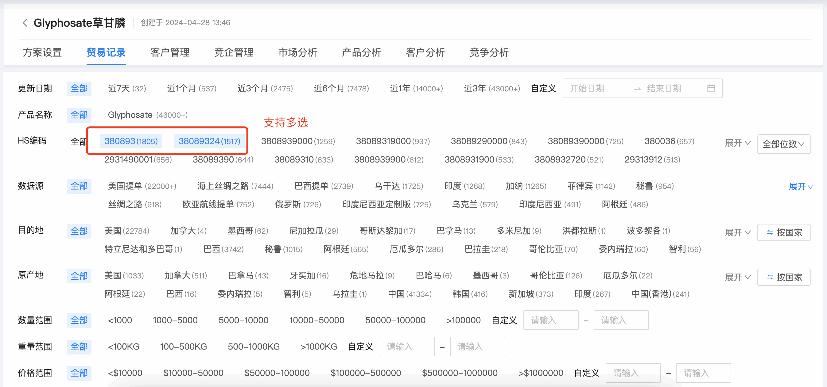 K8凯发(中国) > 行业资讯 > K8凯发(中国)数据通产品更新——贸易记录可按照编码筛选